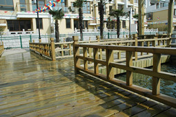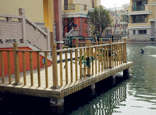 本公司采用防腐處理新技術(shù),經(jīng)專業(yè)防腐處理后,具有耐磨損,紋理清晰美觀,易保養(yǎng)等特點,同時也極具親和力。 我們的產(chǎn)品能抵抗白蟻的侵蝕和孢子真菌的生長,包括水中生物的寄宿和其他昆蟲的產(chǎn)生和繁殖,正常使用下,產(chǎn)品壽命在30年以上。